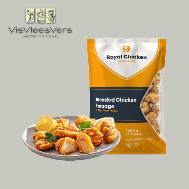 Karaage (gepaneerde kippendij) per kilo is nabesteld en wordt verzonden zodra het weer op voorraad is.